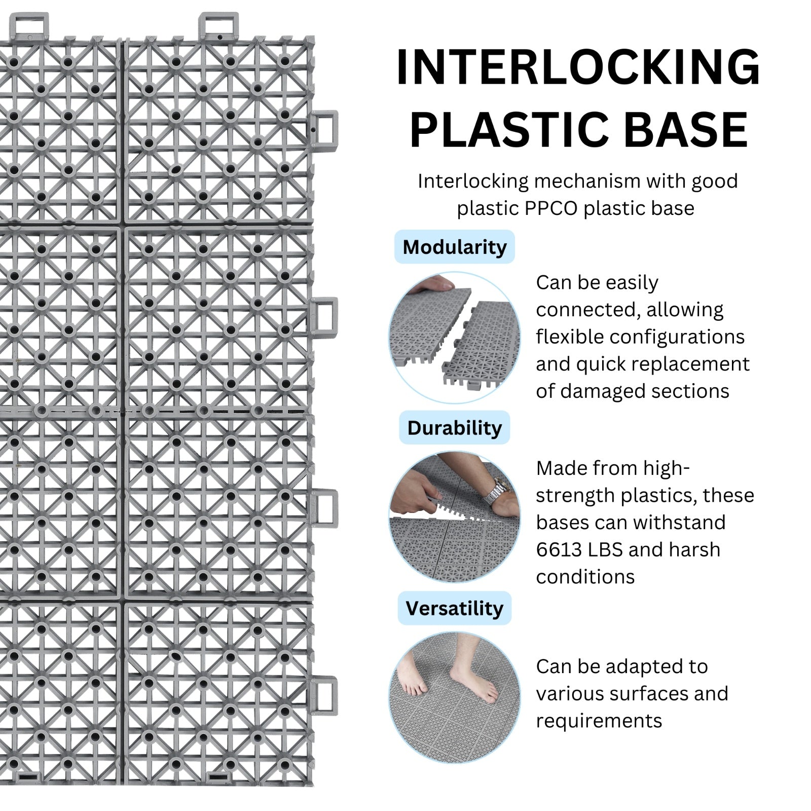 EFFICIENT DRAINAGE DESIGN: Our innovative design enhances friction to prevent slipping, improving stability and firmness, making these deck tiles ideal for outdoor flooring or patio tiles. It prevents water accumulation and promotes airflow, ensuring a dry, safe, and hygienic surface, whether used in your backyard, balcony, or any outdoor space.