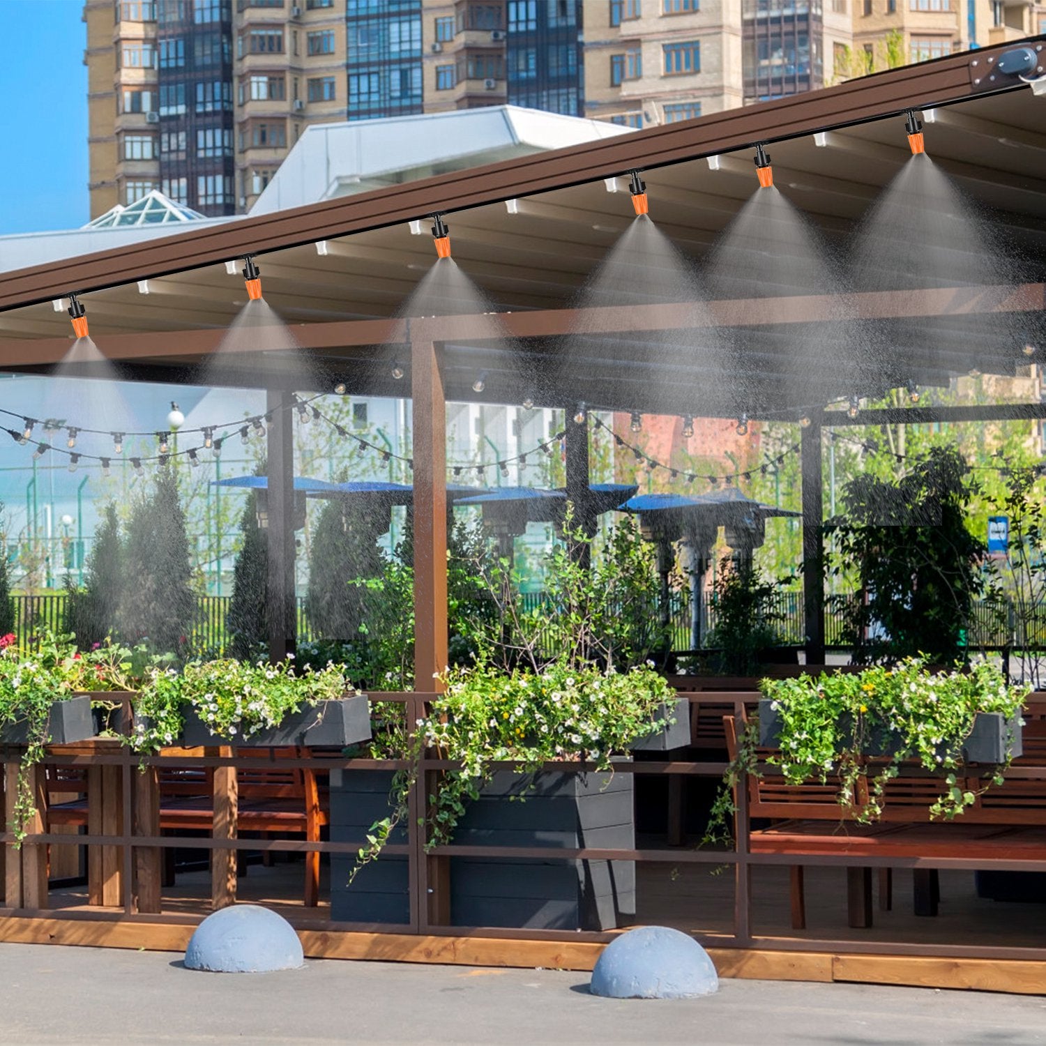 • *Wide Applications*: Automatic irrigation kit is great for atomization,lawn irrigation,patios,roof cooling,agriculture,vegetable,greenhouse,flower bed,swimming pool misting fog cooling irrigation etc..