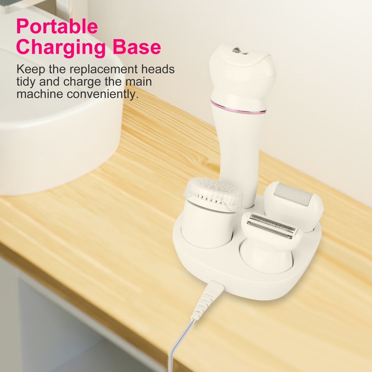 1Pc 5 In 1 Electric Body Epilator Rechargeable Women's Grooming Kit Epilator Shaver Facial Brush Callus Remover 5 Point Massager With LED Light LED Display Charging Base