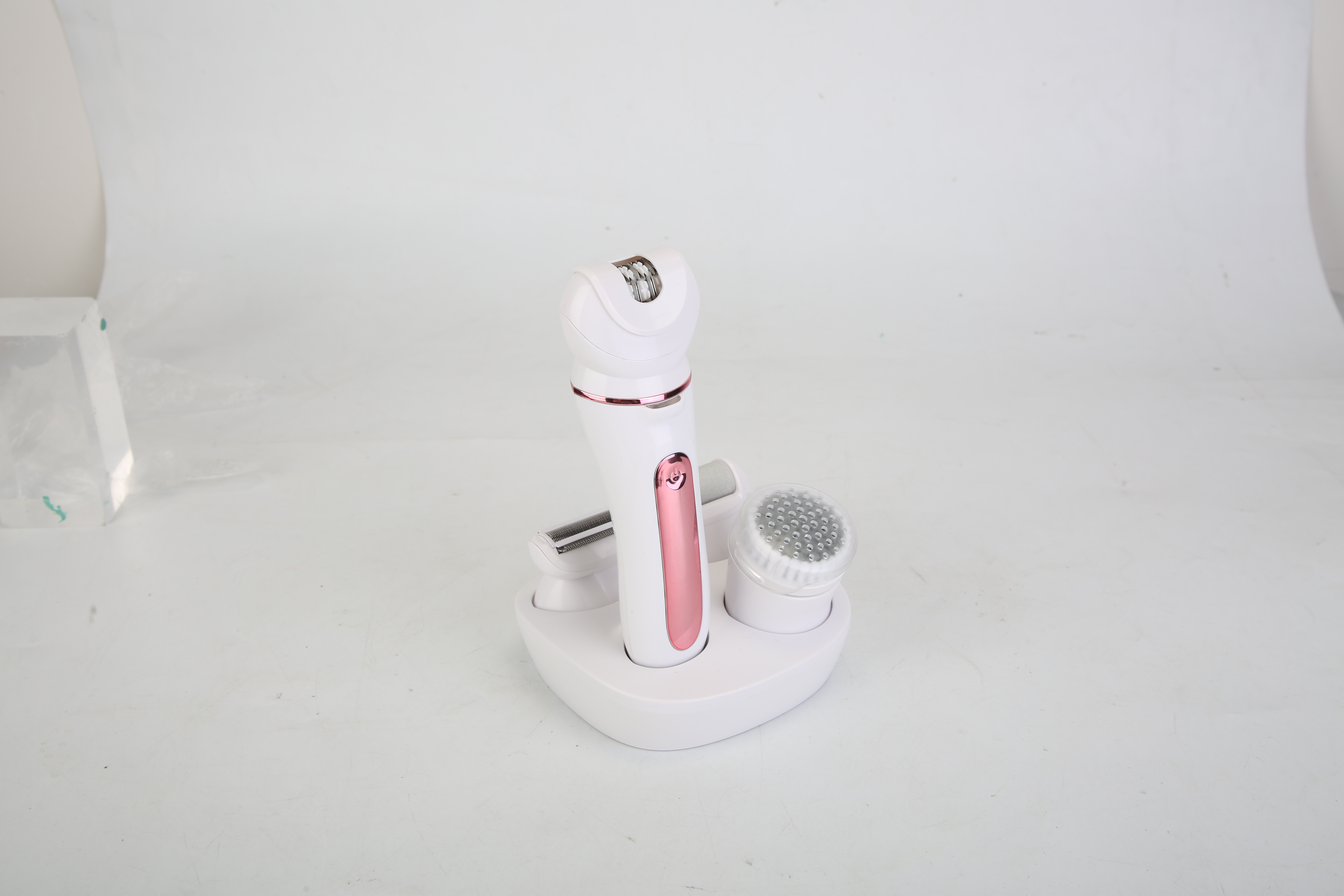 - *5 In 1 Electric Razors Kit*: This women's grooming kit includes 5 replacement heads. The body epilator helps remove hair from arms, intimate areas, leg hair, and more. The hair shaver is ideal for trimming hair on hands, feet, underarms, and bikini areas. The facial brush is designed for facial cleansing. The callus remover is perfect for foot care and skin softening, effectively removing dead skin and calluses. The 5-point massager provides multi-point massage to relieve tension and promote relaxation throughout the body.