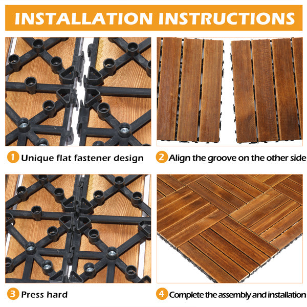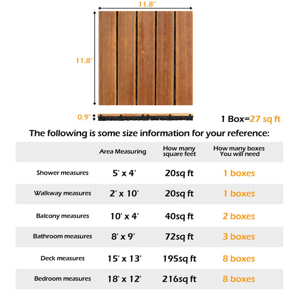 27pcs Wood Interlocking Deck Tiles 11.8x11.8, Waterproof Flooring Tiles For Indoor And Outdoor, Patio Wood Flooring For Patio Porch Poolside Balcony Backyard, Stripe Pattern