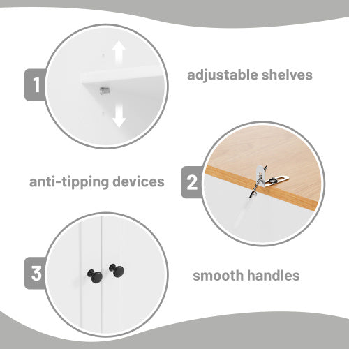 [8 Door Storage Racks] This elegantly designed 4-door kitchen pantry includes two upper doors, each door opening revealing 4 door shelves, cleverly maximizing storage space. The height of the shelves has been carefully designed (from 5.9 inches to 8.7 inches) to make it easy to store items from tall bottles to small jars. For added convenience and safety, a removable barrier is installed to ensure nothing goes wrong.