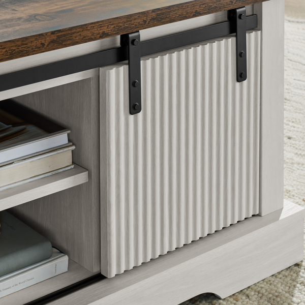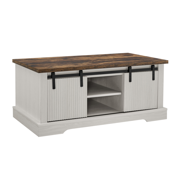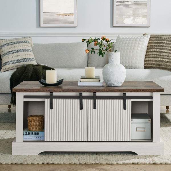 41.3 Inch Coffee Table With Storage And Sliding Wood Door, Farmhouse And Industrial Cocktail Table With Adjustable Shelves, Rectangular Rustic Living Room Table For Living Room Meeting Room