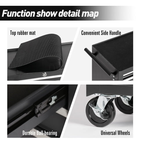 - FAIR STORAGE SPACE: The rolling tool chest is designed with 5 drawers for storing tools, small equipment or other objects. And its top, with a cushion, can be used for placing tools during work as well.
