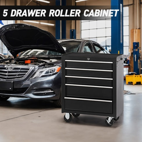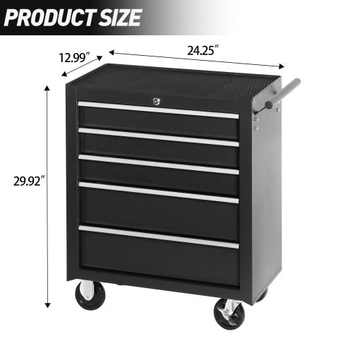 5-Drawer Rolling Tool Chest W Lock Key, Tool Storage Cabinet With Wheels, Top Cushion & Drawer Liners, Tool Organizer Box For Garage, Warehouse Repair Shop
