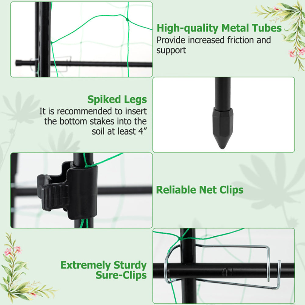 The U-shaped frame is secured with extremely sturdy sure-clips, complemented with spiked legs that can be deeply Bring in the ground, ensuring good stability. Additionally, it adopts textured metal tubes, providing increased friction and support for plants to grow up.