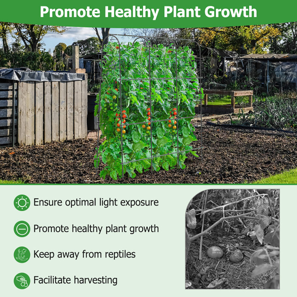 This garden trellis is suitable for a variety of climbing plants, such as grapes, tomatoes, peas, cucumbers, flowers, and more. It could keep plants away from ground during the growth process, so as to reduce plant disease and keep away from reptiles, promoting healthy plant growth.