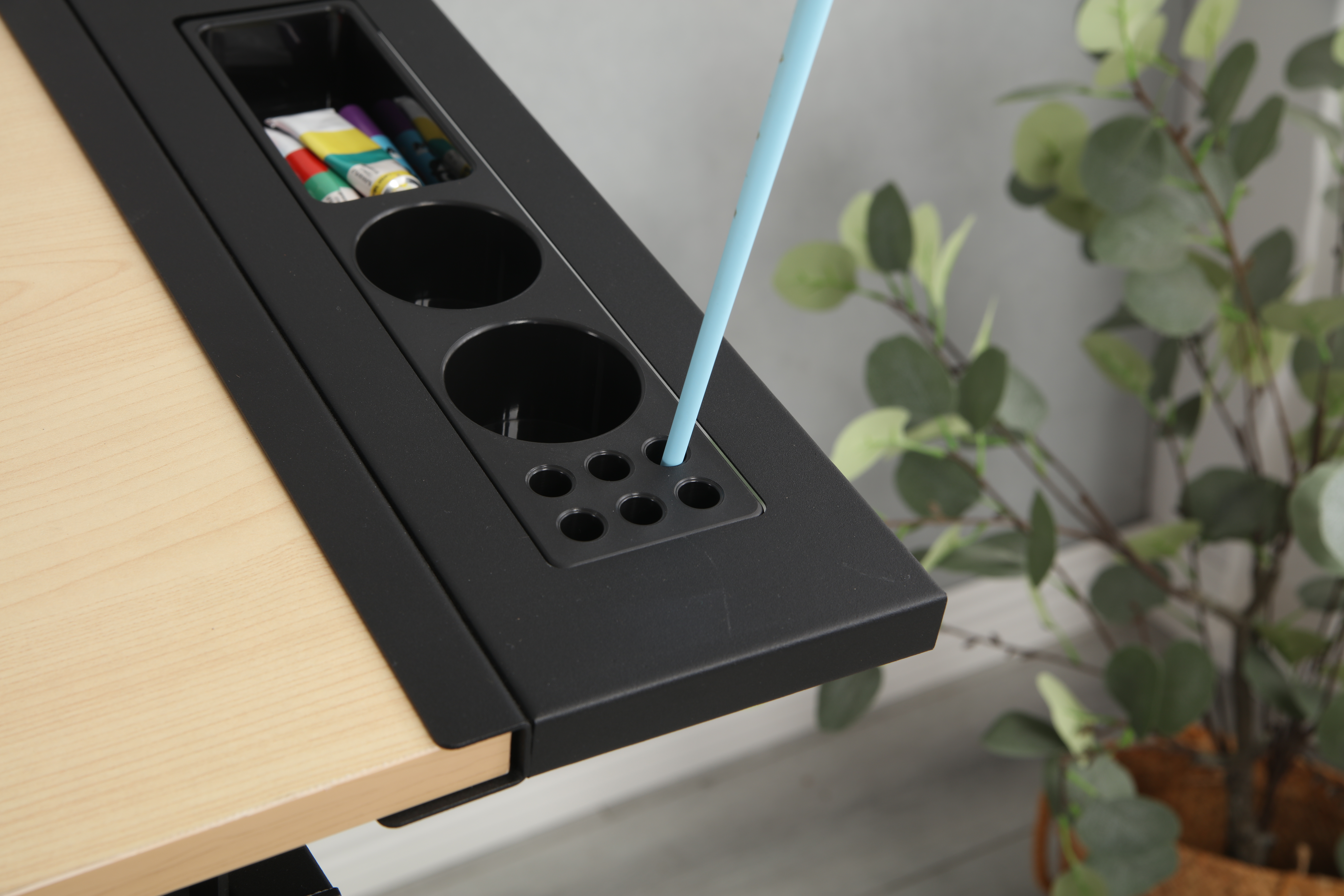 - Tabletop can be tilted: The desktop is made of 18mm thickness P2 MDF, the desktop can be tilted from 0 to 75°.