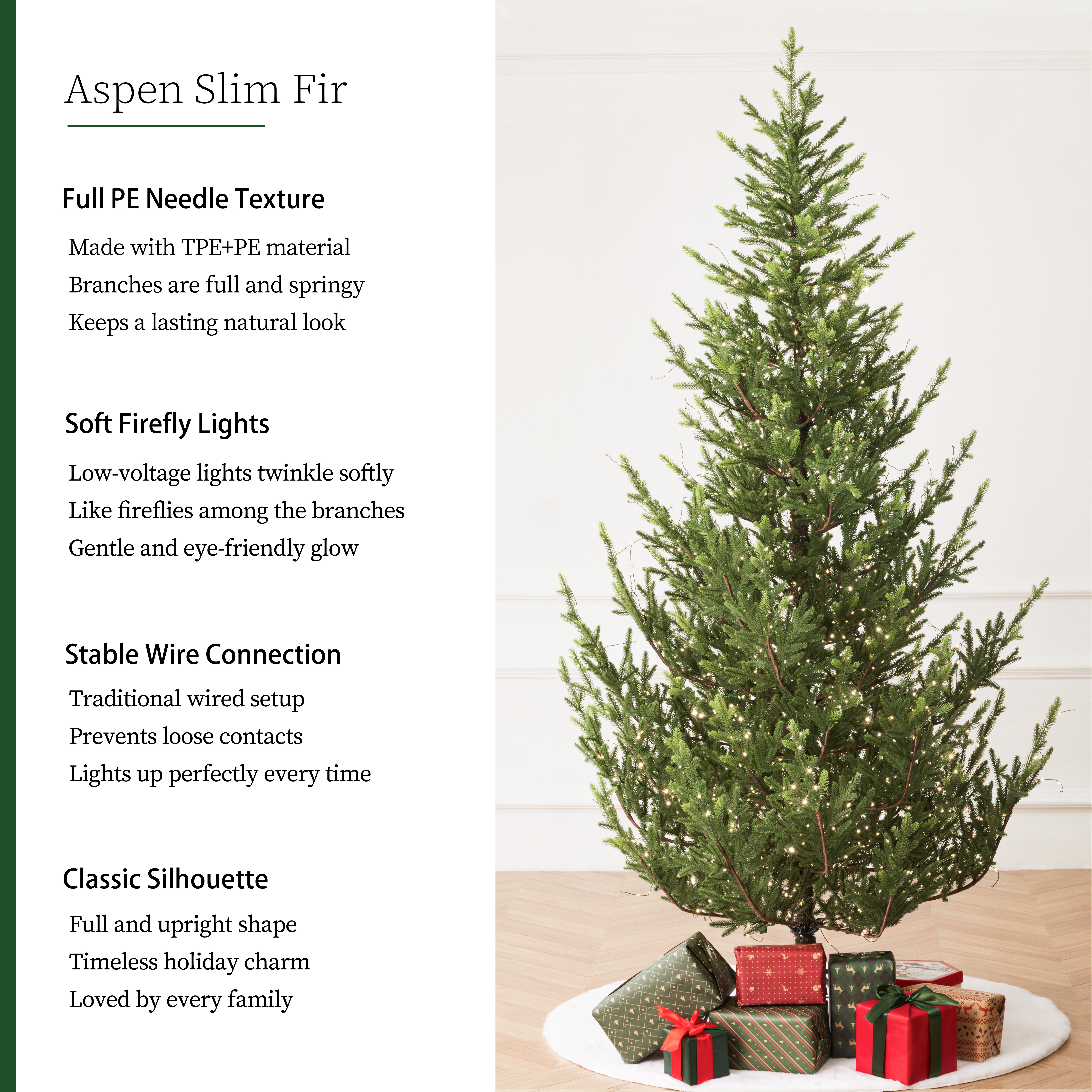 Aspen Slim Fir 7.5ft Christmas Tree Pre-Lit Artificial With 4,570 Branch Tips & 1,555 Low-Voltage Warm LED Lights, Foldable Stand & Realistic Flame-Resistant Branches