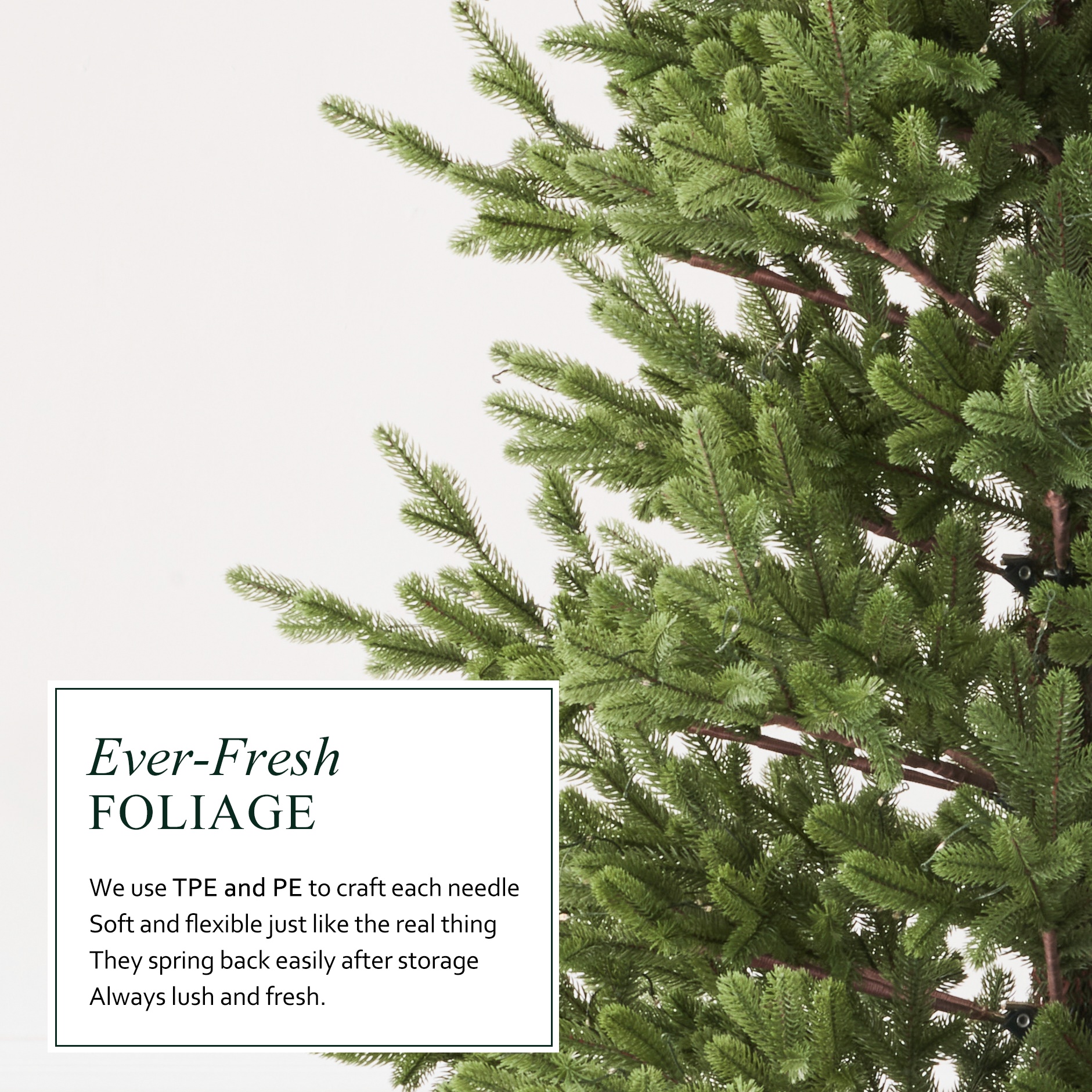 REALISTIC & DURABLE MATERIALS – Built with TPE+PE blend foliage for natural color and durability. Flexible branches spring back; flame-resistant construction adds peace of mind.