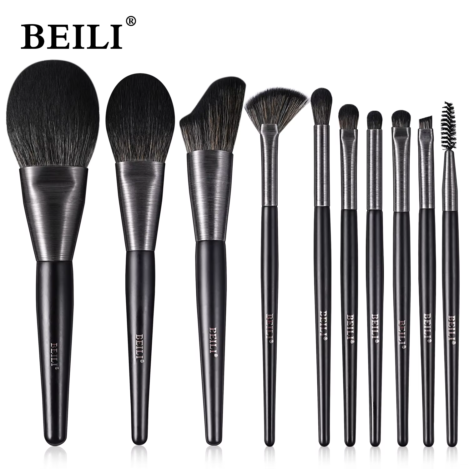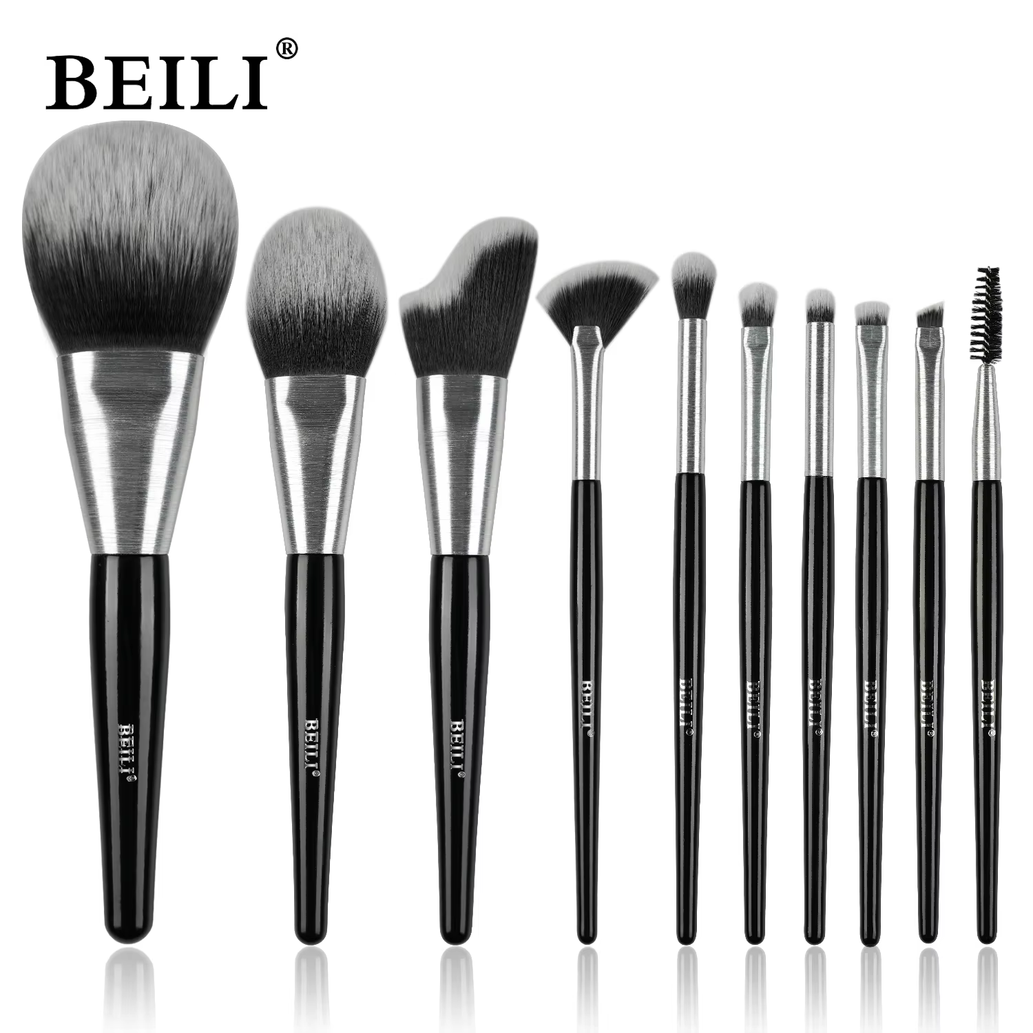 Beili Christmas Gift Makeup Brush Set Of 10, Kabuki Brushes With Synthetic Hair For Foundation, Concealer, And Eyeshadow.