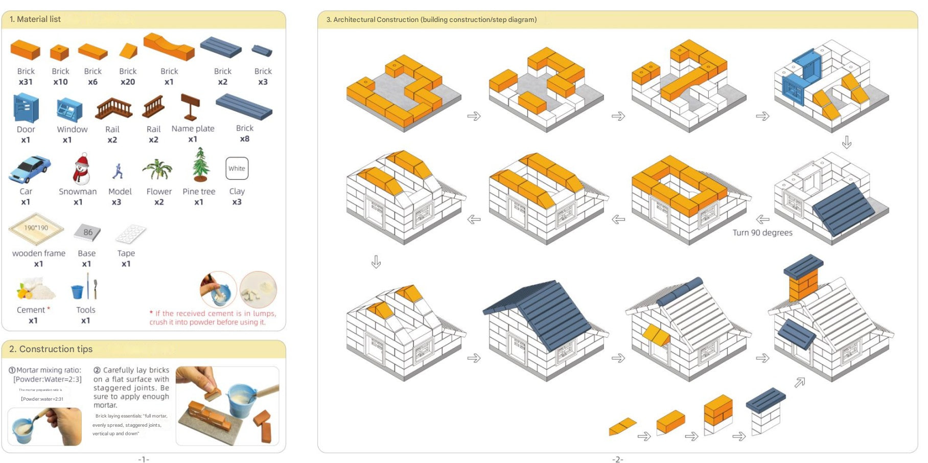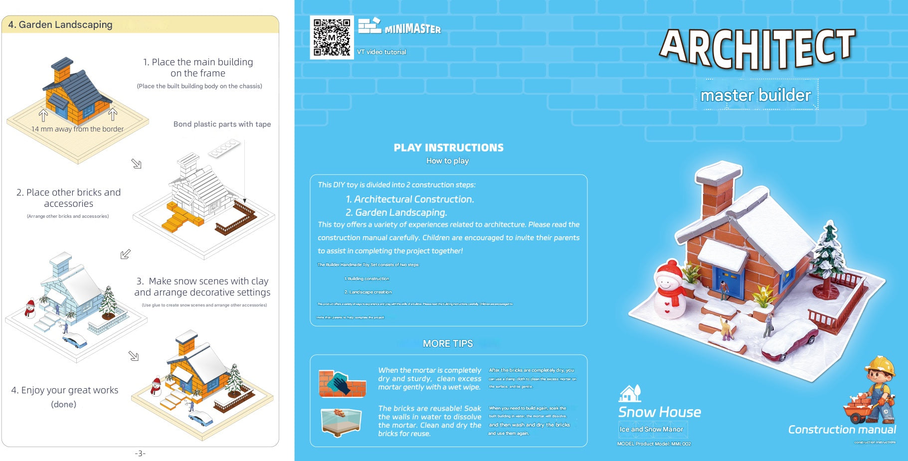 DIY Brick Miniature House Kit,Handcrafted model-Real clay brick,Educational Toy for Kids-Snow House Holiday Gift Box