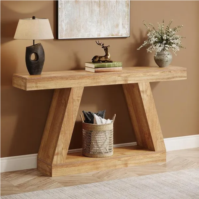 Console Table, 55-Inch Rustic Sofa Table With Storage, Industrial Wooden Entryway Table