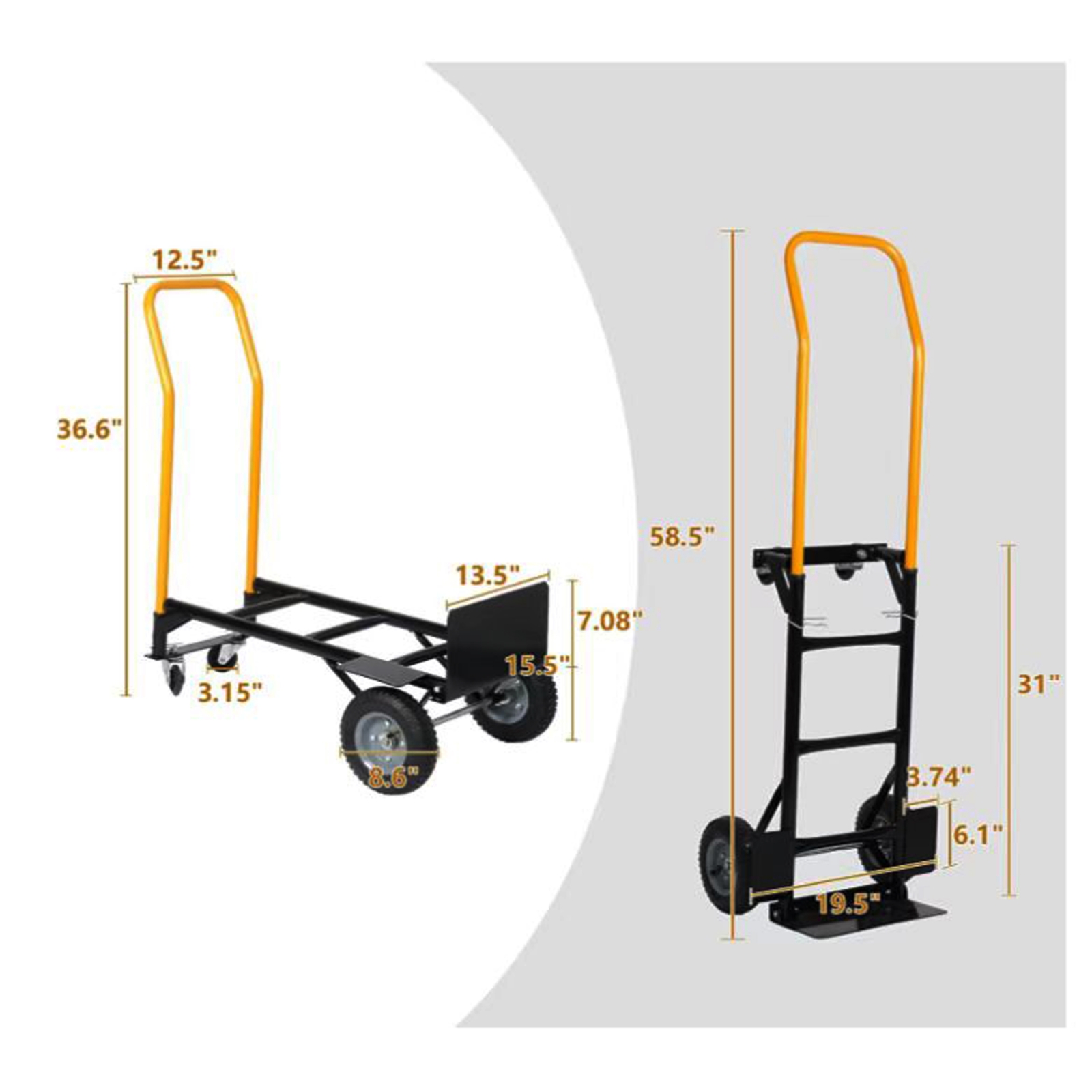 Dual Purpose Hand Truck Dolly Cart, 2 4 Wheel, Swivel Wheels, 330 Lbs Capacity