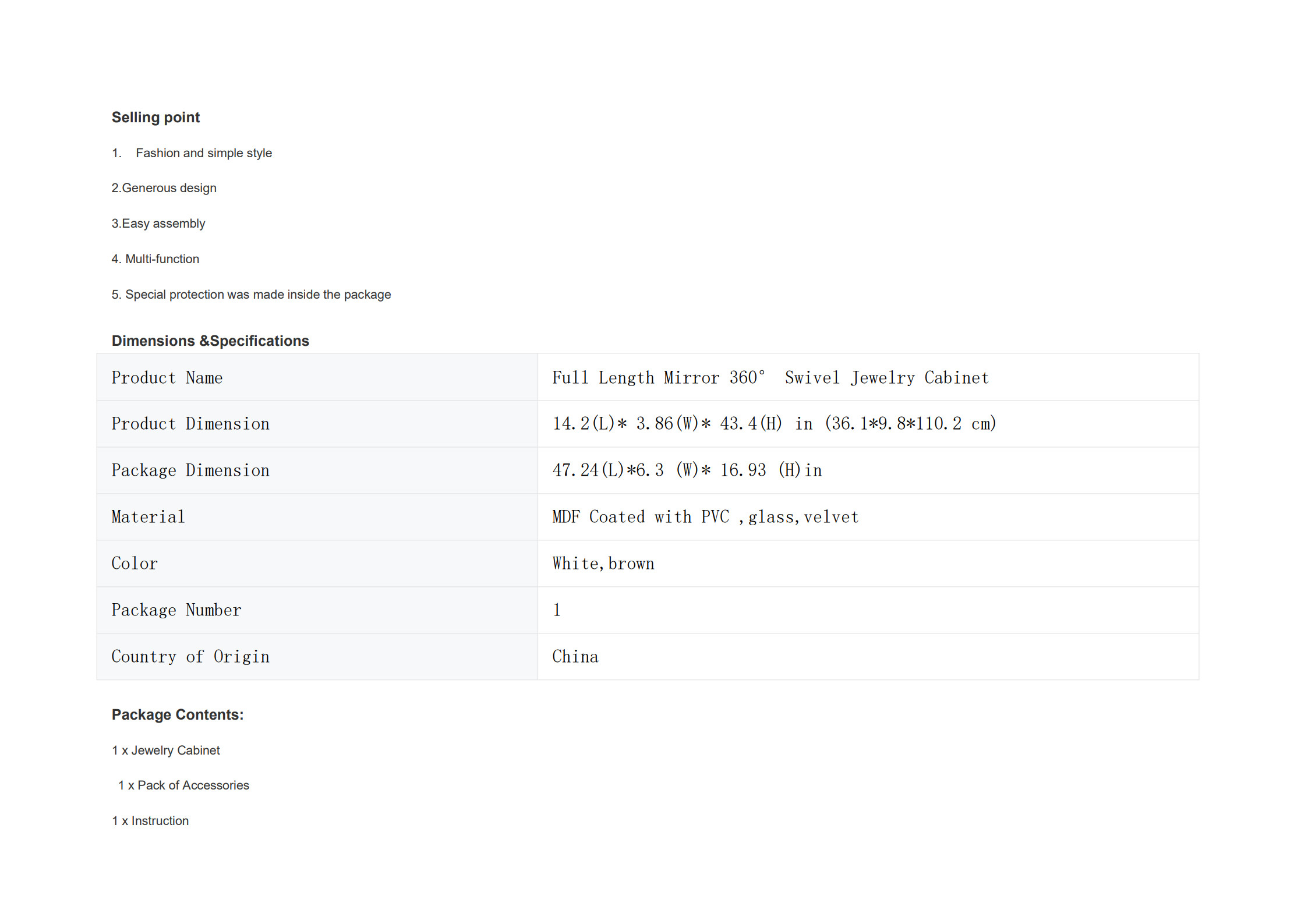 Product Name:Full Length Mirror 360° Swivel Jewelry Cabinet
