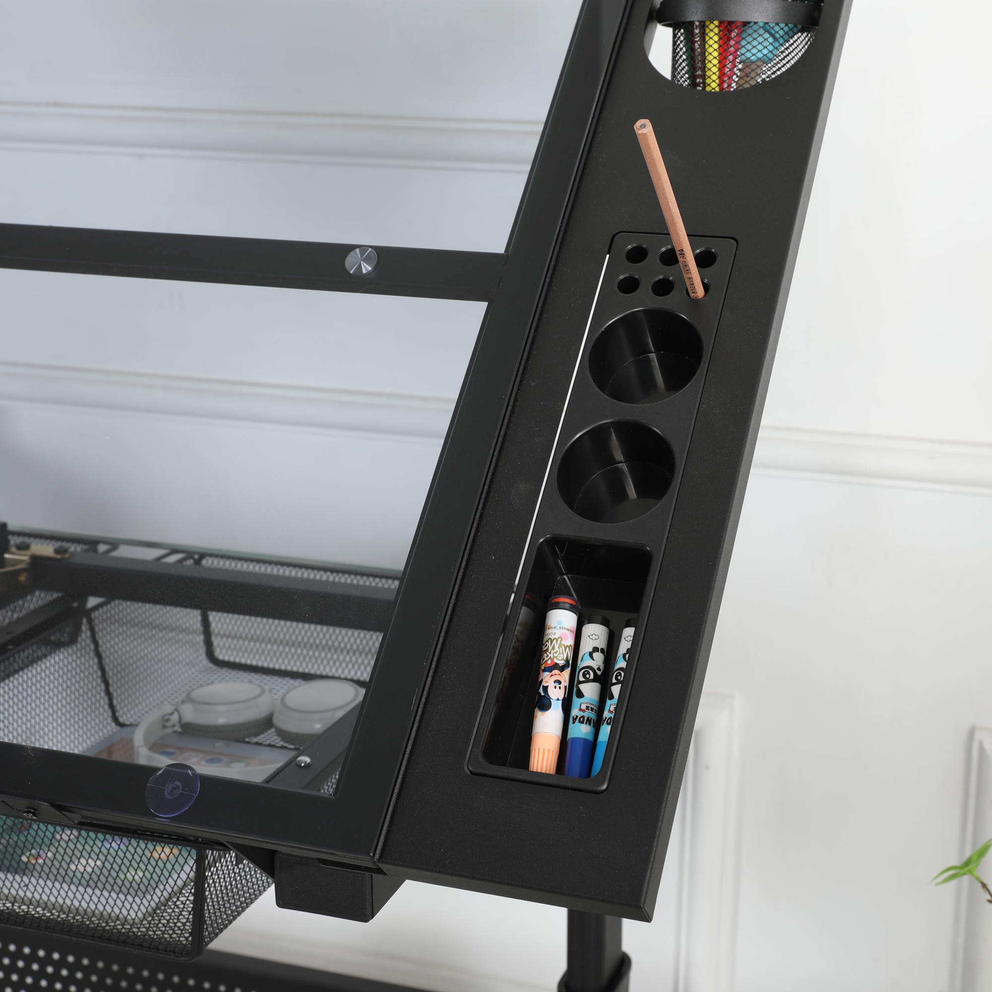 - Tabletop can be tilted: The desktop is made of 5mm thick tempered glass transparent material, which has good light transmittance. the desktop can be tilted from 0 to 75°.