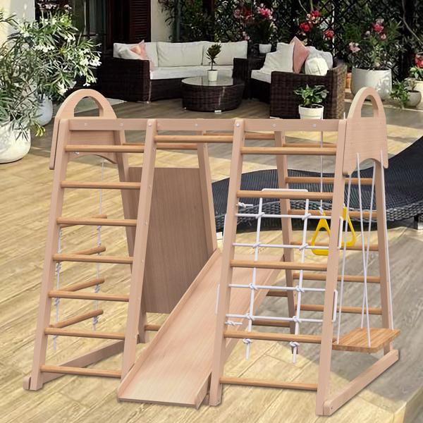 - 7-IN-1 INDOOR WOODEN JUNGLE GYM PLAYGROUND - Get ready for endless fun and adventure with 7-in-1 Indoor Wooden Jungle Gym Playground! This exciting playset is the perfect way for your child to develop important gross motor skills while staying safe and entertained.