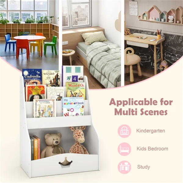 Kids 3-Tier Bookshelf & Toy Storage White - Open Compartment Hidden Back Space