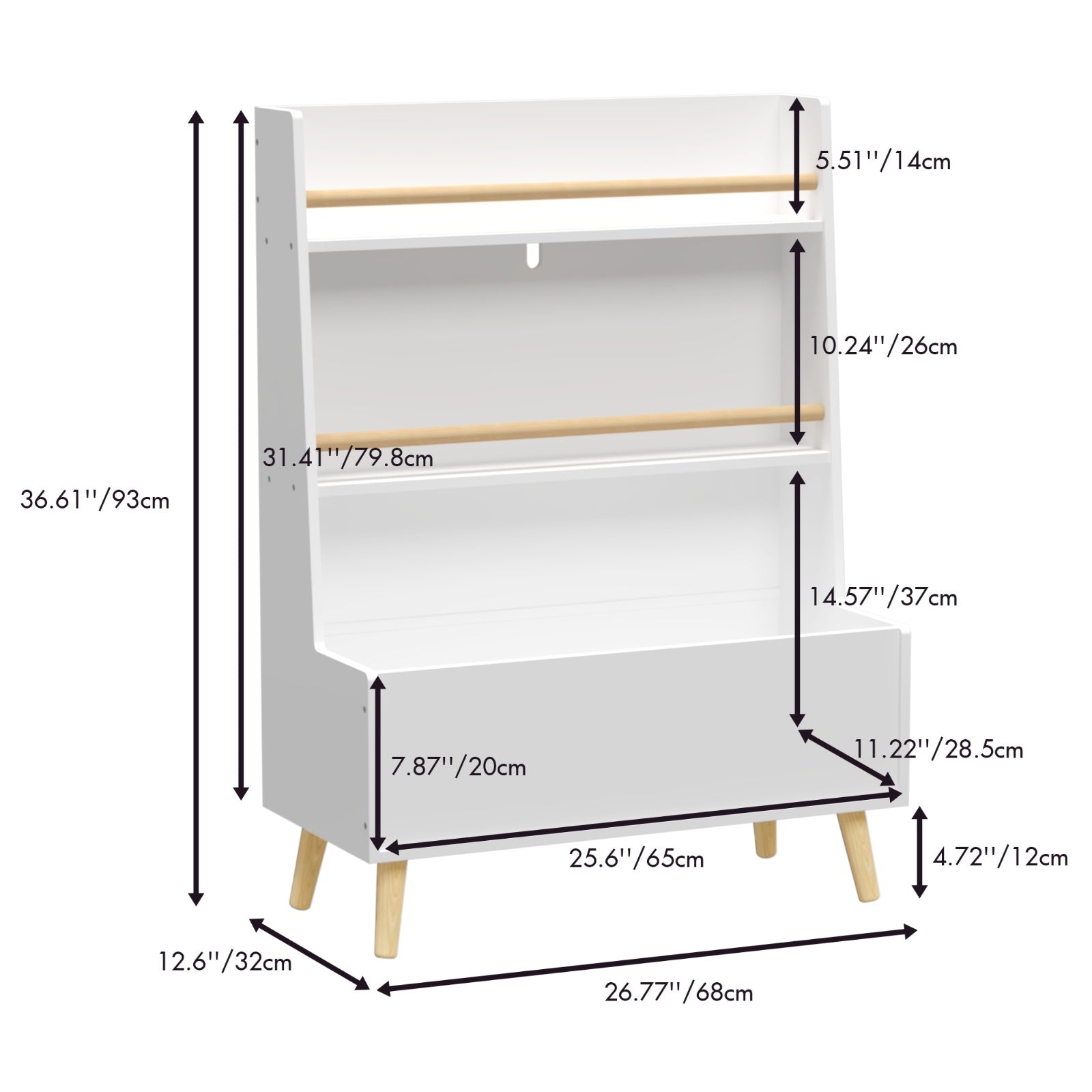 Kids Bookshelf & Magazine Rack - Toy Storage Cabinet Organizer, White