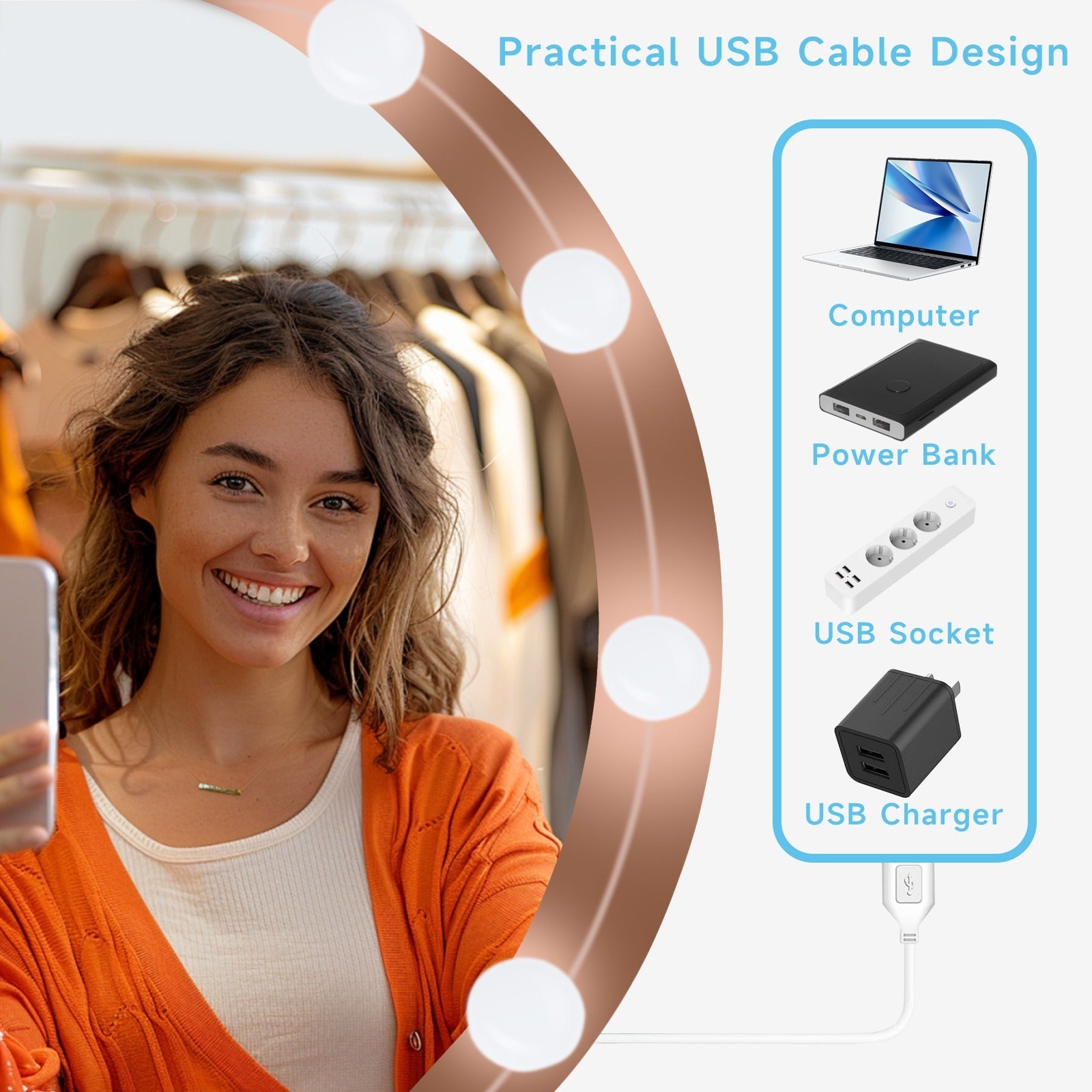 LED Makeup Mirror With Adjustable Ring Light - Portable Rechargeable Vanity Mirror With Smart Dimming