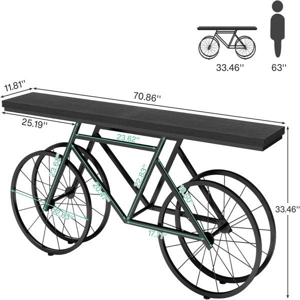 - Eye-Catching Design: The audacious charm of this entryway table breathes new life into your space, transforming it into a creative haven. Its unique bicycle metal base is the epitome of innovative design, adding an unconventional yet stylish twist. The combination of the warm wood tone and the edgy metal frame creates a chic and sophisticated look that complements a variety of decor styles.