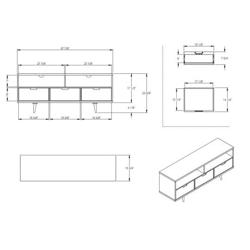 Product Name: Mid-Century Modern 3-Drawer Solid Wood TV Stand for TVs up to 65" - White