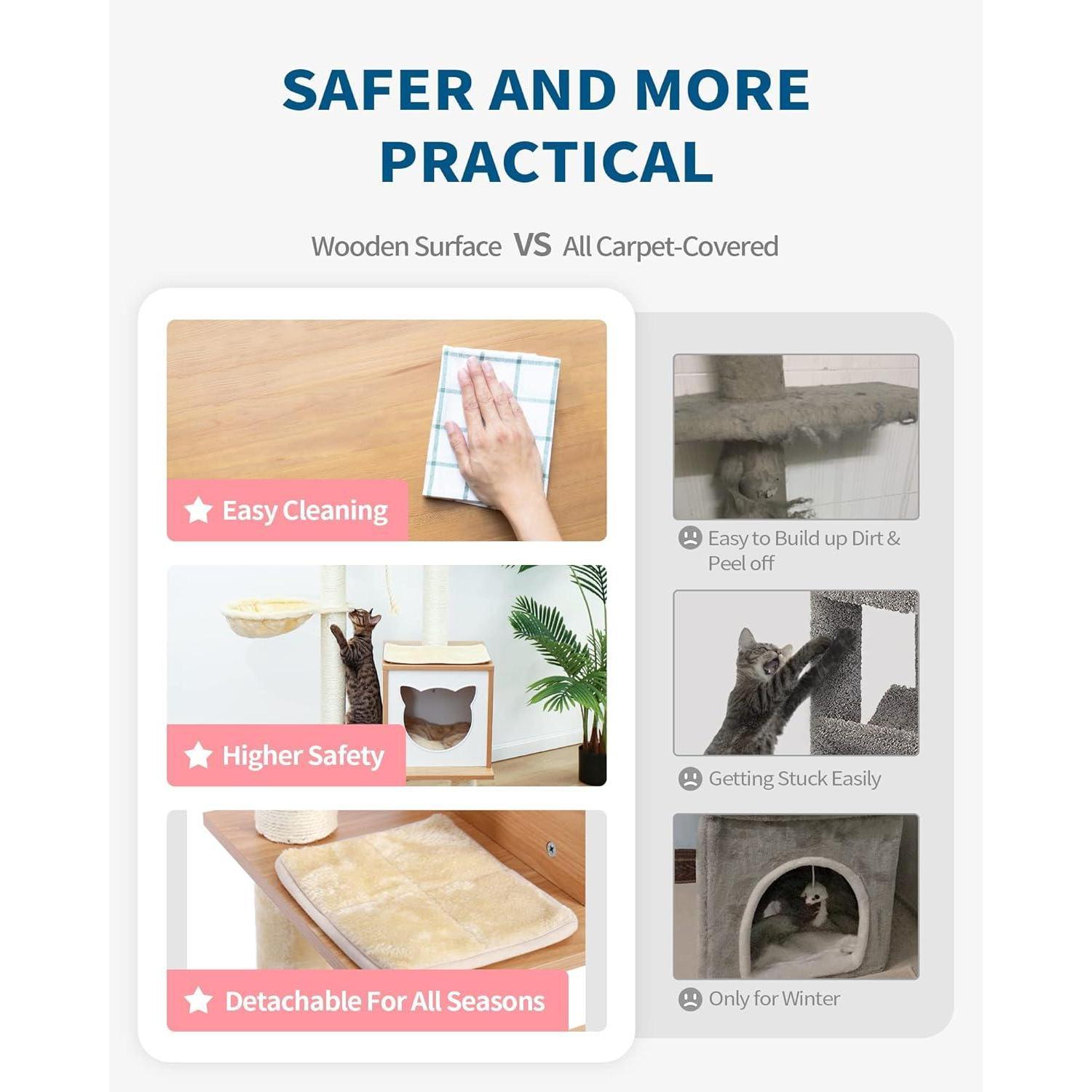 Creative and Functional: Different from carpet-covered cat trees, we designed this wood cat tree which combines an elegant look with practicality