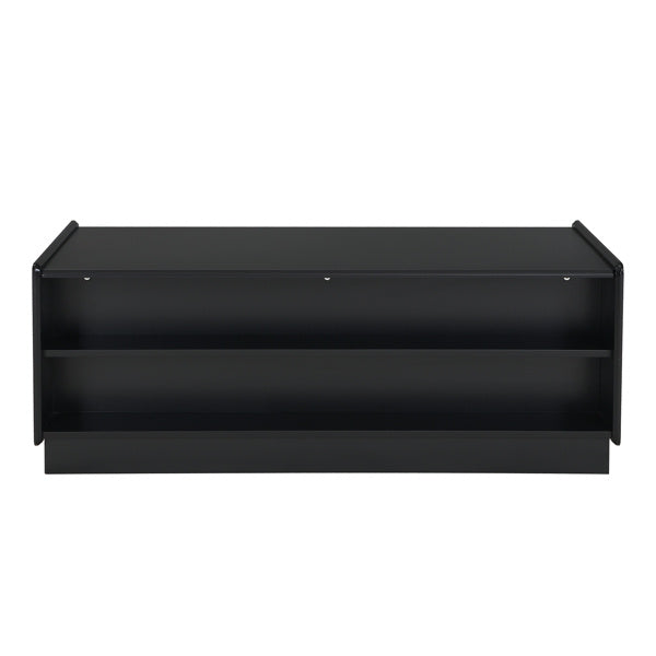 Modern Rectangle Coffee Table With 4 Drawers And 2 Display Shelves, Wood Coffee Table With Fluted Style, Tempered Glass For Living Room