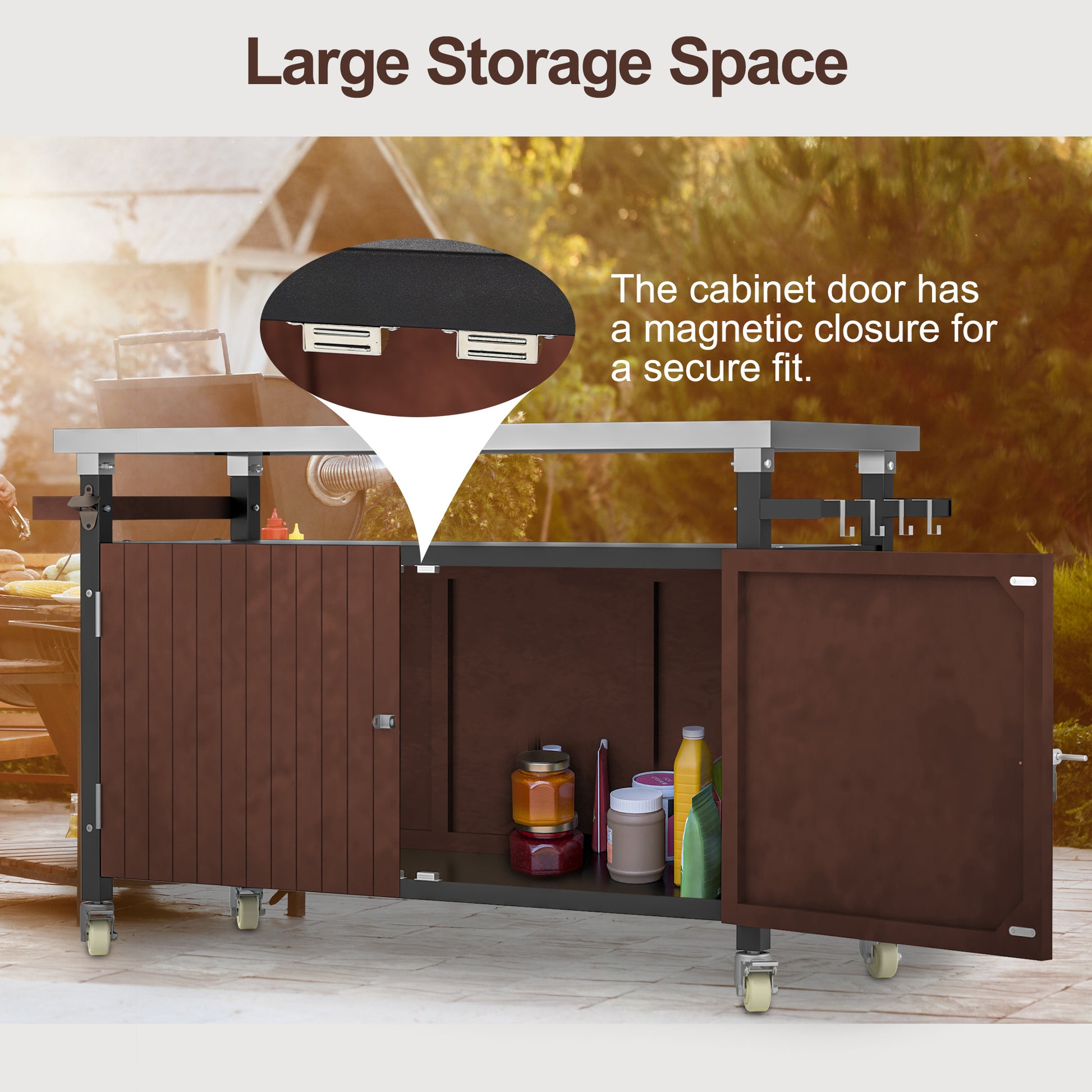 - 【Spacious & Smart Storage】 The Big Size Outdoor Grill Cart measures 52.7" W x 21" D x 34.7" H, The outdoor cabinet and prep table provide enough space to store plates, foods and other kitchen necessities.