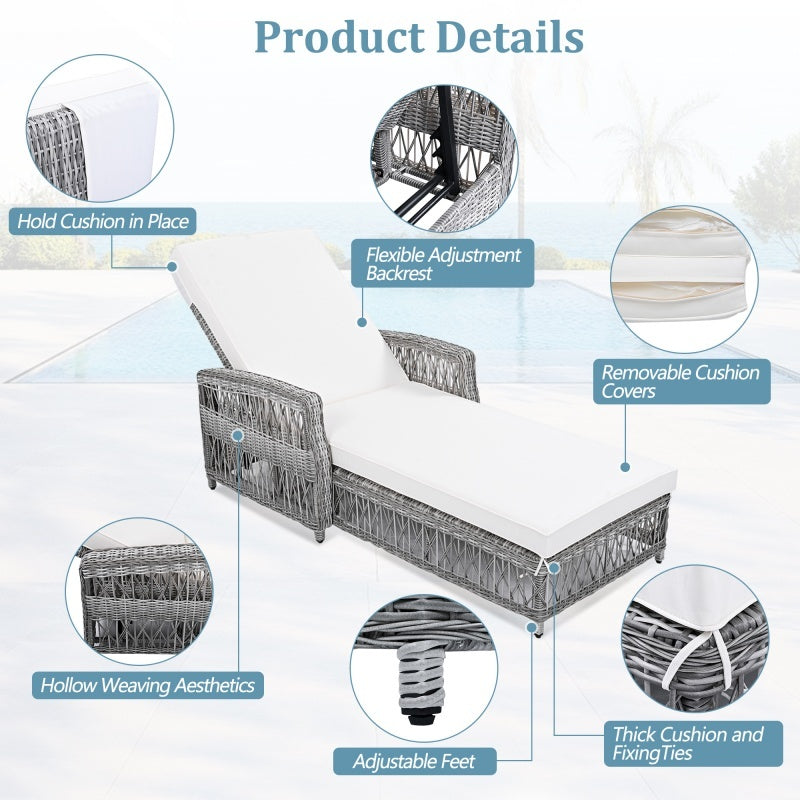 - Adjustable Backrest: This patio lounger has 4 levels of adjustability from completely flat to the highest level, giving you plenty of options to suit your relaxation needs. Whether you like reading, sunbathing, or sleeping, you can easily find the most comfortable angle.