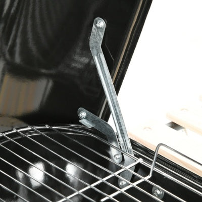 - Precise Heat Control: A lockable lid allows safety and insulation. An aluminum damper allows air circulation when closed while offering control over the temperature inside. Speaking of, inside our charcoal grill on wheels, you'll find a warming rack to help keep food at just the right temperature.