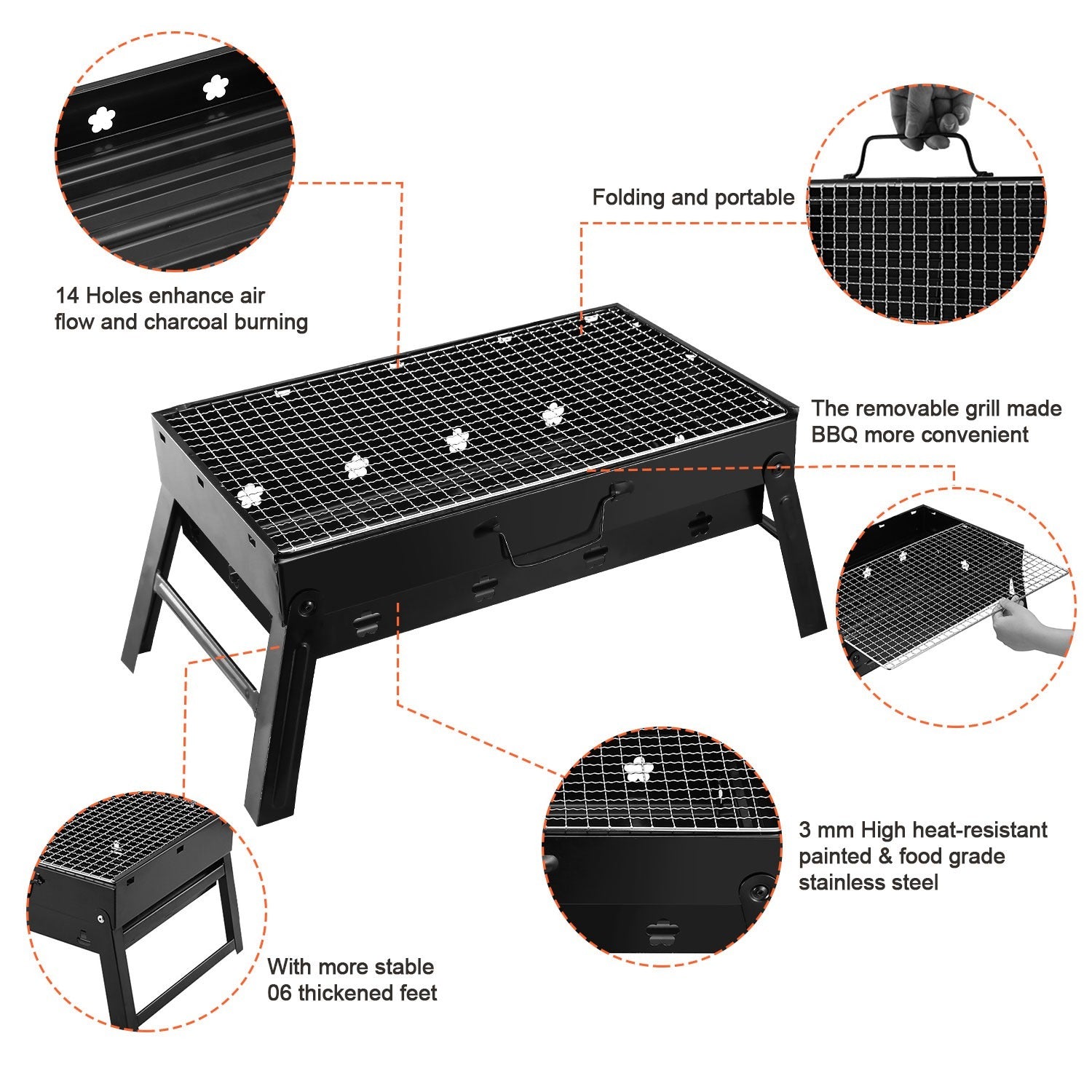 - *PERFECT FOR OUTDOOR: Our portable BBQ grill is a great tool for outdoor camping, backpacking, picnics, tailgate parties, camping, t and grilling in small spaces; It\'s perfect to cook delicious food on our portable BBQ grill like pork, burgers, fish, vegetables, steak, hot dogs, corn and more. Suitable for 4-6 group.
