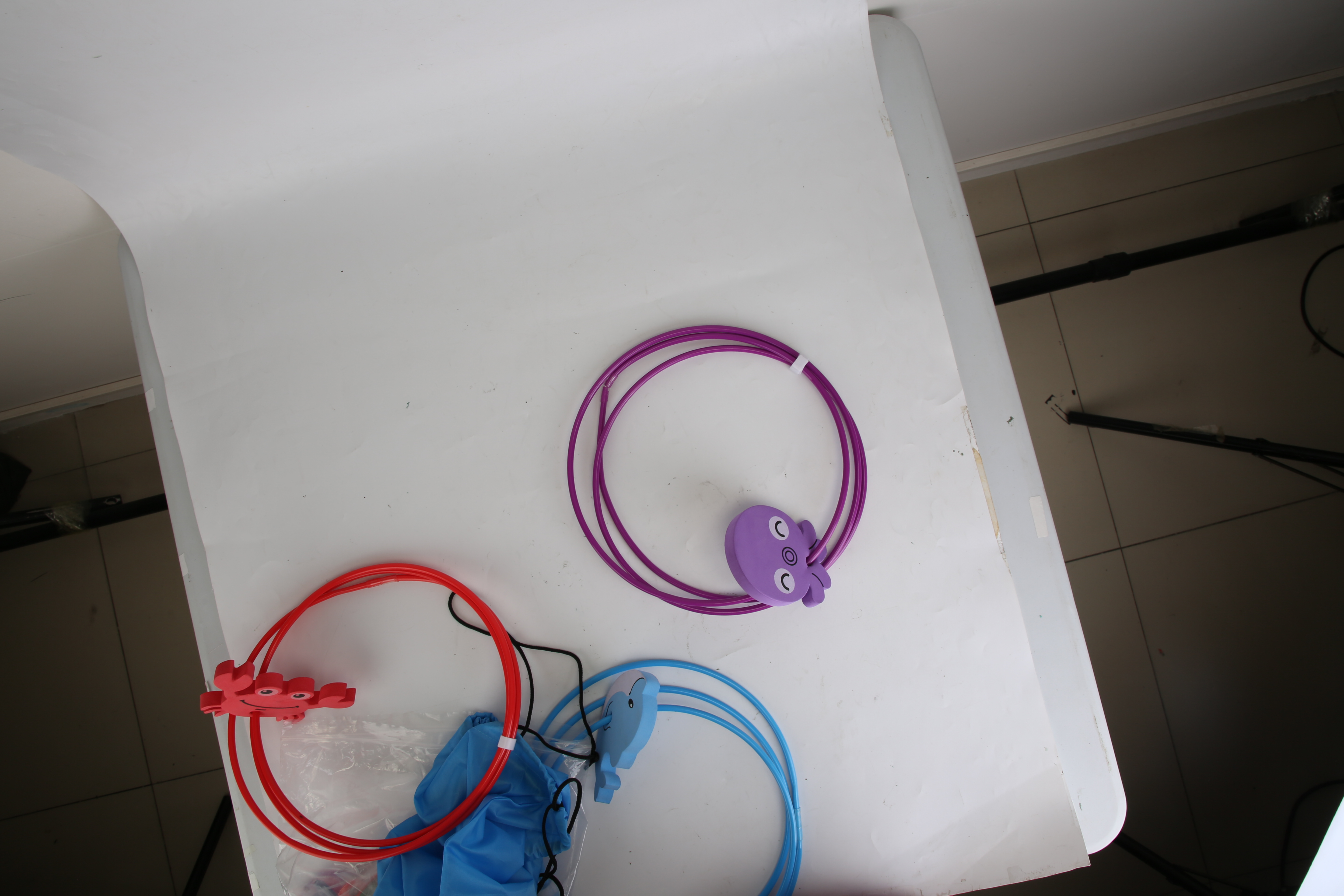 - 1. The 3 diving rings are sealed tight and the 3 buoys have already installed on the rings by the manufacturer. The cartoon buoys cannot be detached from the rings.