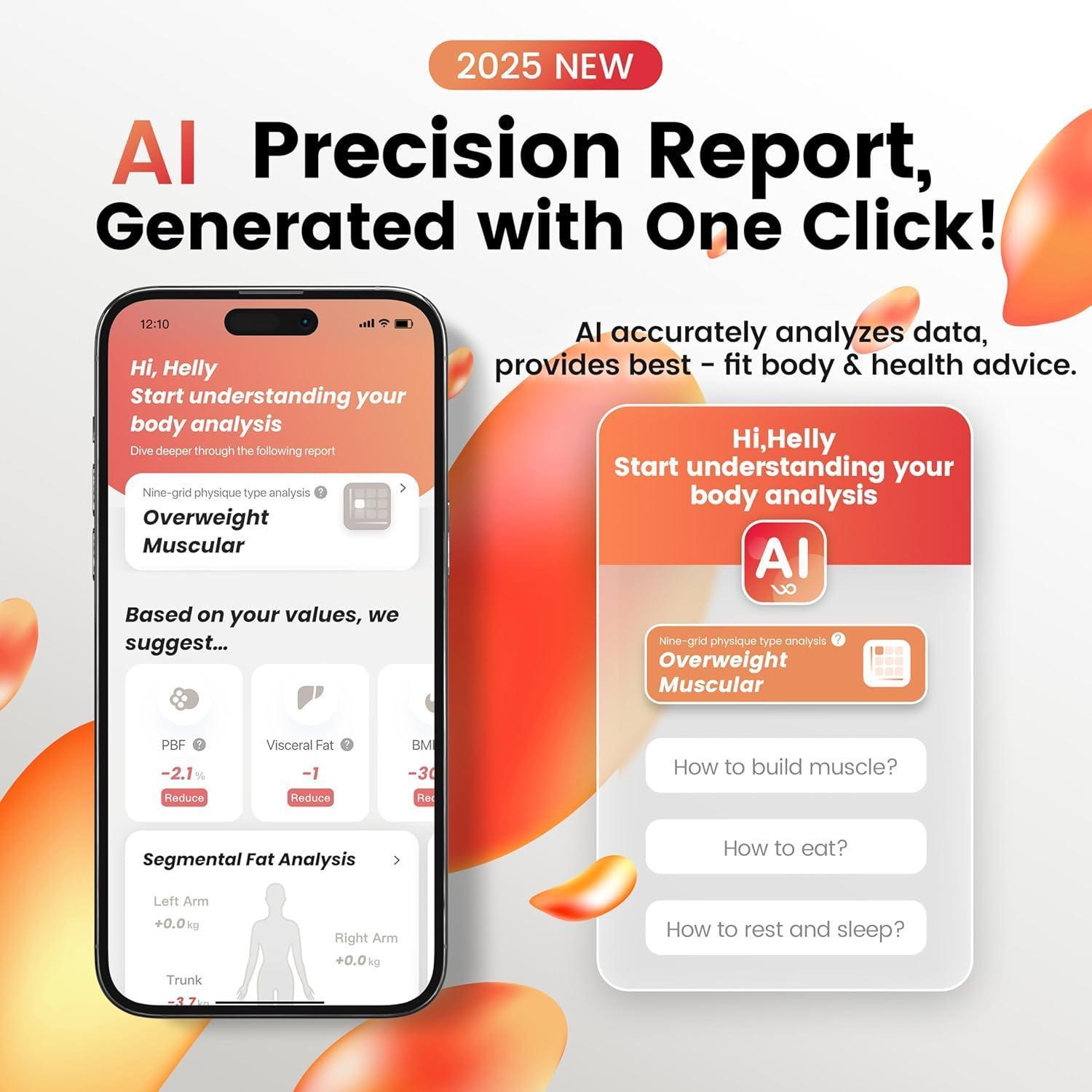 Revolutionize Your Health Journey』The FitSpec Bluetooth scale is more than a BMI measurement tool, cutting-edge AI-powered technology that has been rigorously vetted by expert nutritionists and sports scientists. Drawing insights from over 10 global health authorities, including the NIH, WHO and AHA. Delve deep into your body data to uncover lifestyle patterns, receive personalized plans and enjoy ongoing monitoring and unwavering support with the FitSpec body fat measurement device.