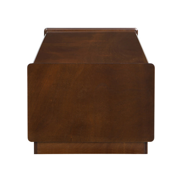 This elegant vintage-inspired rectangular coffee table is the perfect blend of aesthetics and functionality. With its ample storage space, stylish design, and high-quality materials, it offers a timeless charm that will complement any interior. The four drawers, glass accents, and grooved details create a harmonious balance between vintage and modern design elements, making it a standout piece in any room.Investing in this coffee table means bringing both beauty and practicality into your home. Whether you place it in your living room, bedroom, or dining area, it promises to not only elevate your decor but also provide a functional solution for organizing your space. This coffee table will undoubtedly become a beloved focal point in your home for years to come.