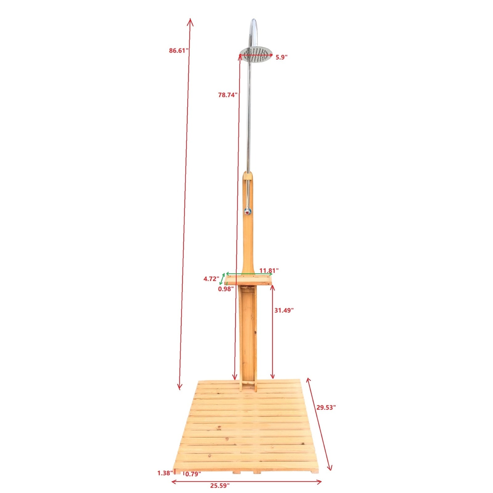 Wooden Outdoor Garden Pool Shower With Chassis Board For Swimming Pool, Patio, Terrace